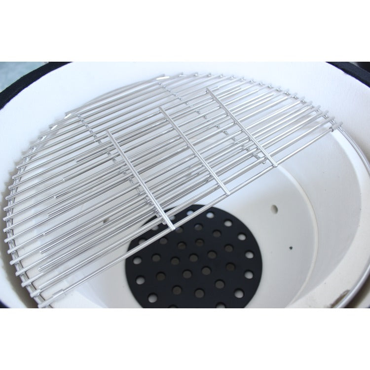 - Optional: Hitzeabweiser, Pizzastein, Gusseisenrost, Satz Roste, Hähnchensitter, Grillspieß, Schutzhülle, Holzkohleanzünder, Ascheschürhaken, hitzebeständiger Handschuh, Pfannenwender, Grillzange, Grillbürste, einfache Feuerzeuge und Grillklammer.