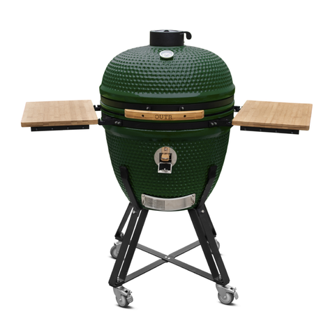 • Der Kamado reinigt sich selbst, indem er 30 Minuten lang bei 260°C brennt, so dass alle Rückstände und Schmutz versengen. Sie ist jedoch nicht zwingend durchzuführen.